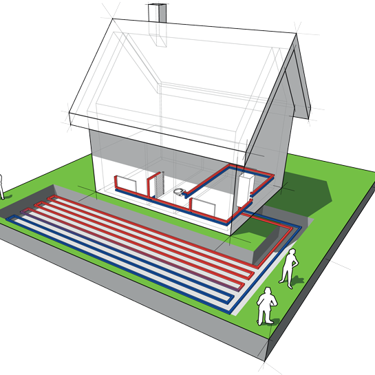 A Ground Source Heat Pump transfers heat from the ground into buildings. Radiation from the sun heats the earth. The earth then stores the heat and maintains, just two metres or so down, a temperature of around 10°C even throughout the winter. A ground source heat pump uses a ground heat exchange loop to tap into this constantly replenished heat store to heat buildings and provide hot water. The technology used is the same as that used in refrigerators. Just as a fridge extracts heat from the food and transfers it into the kitchen, so a ground source heat pump extracts heat from the earth and transfers it into a building.